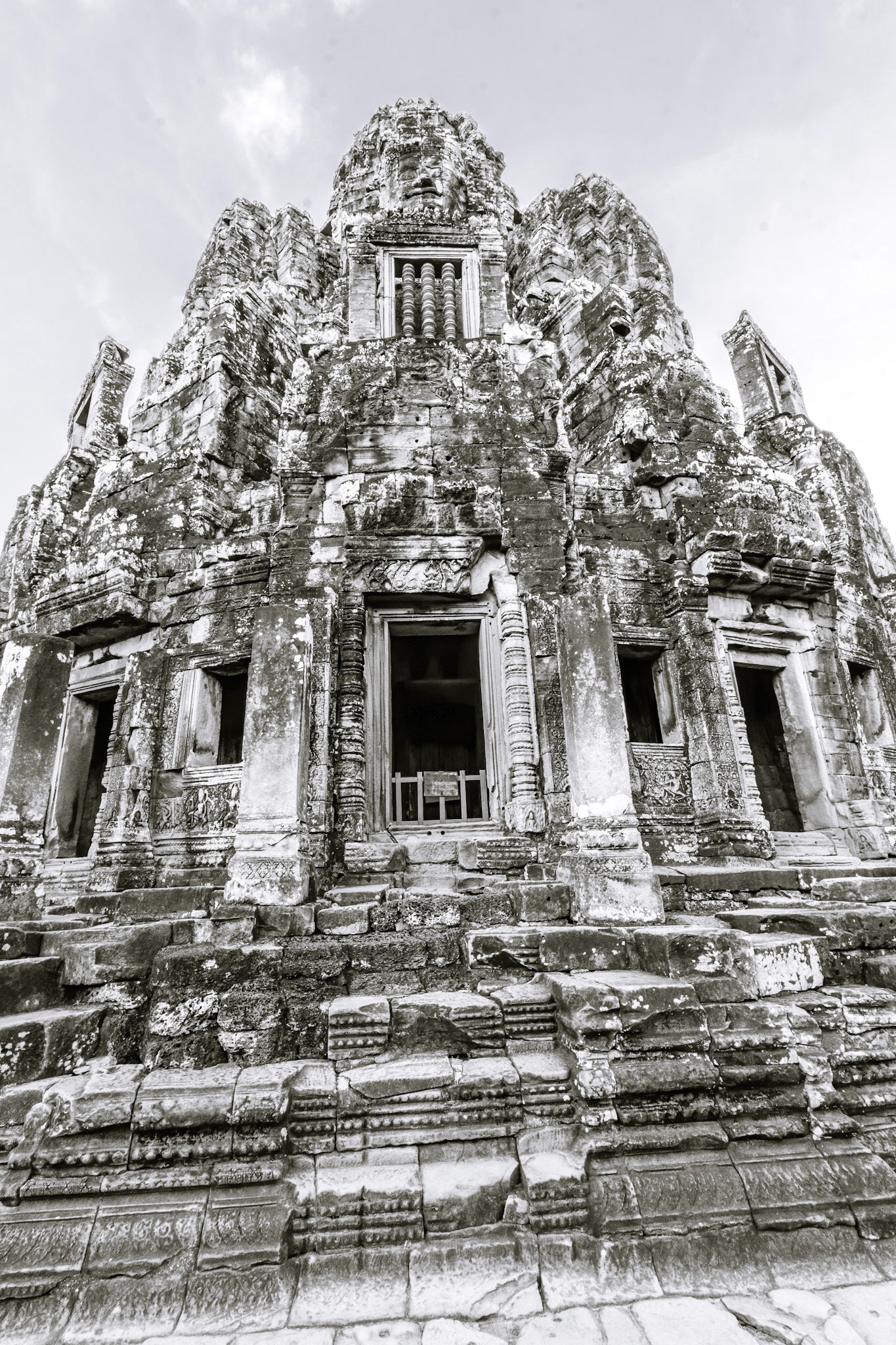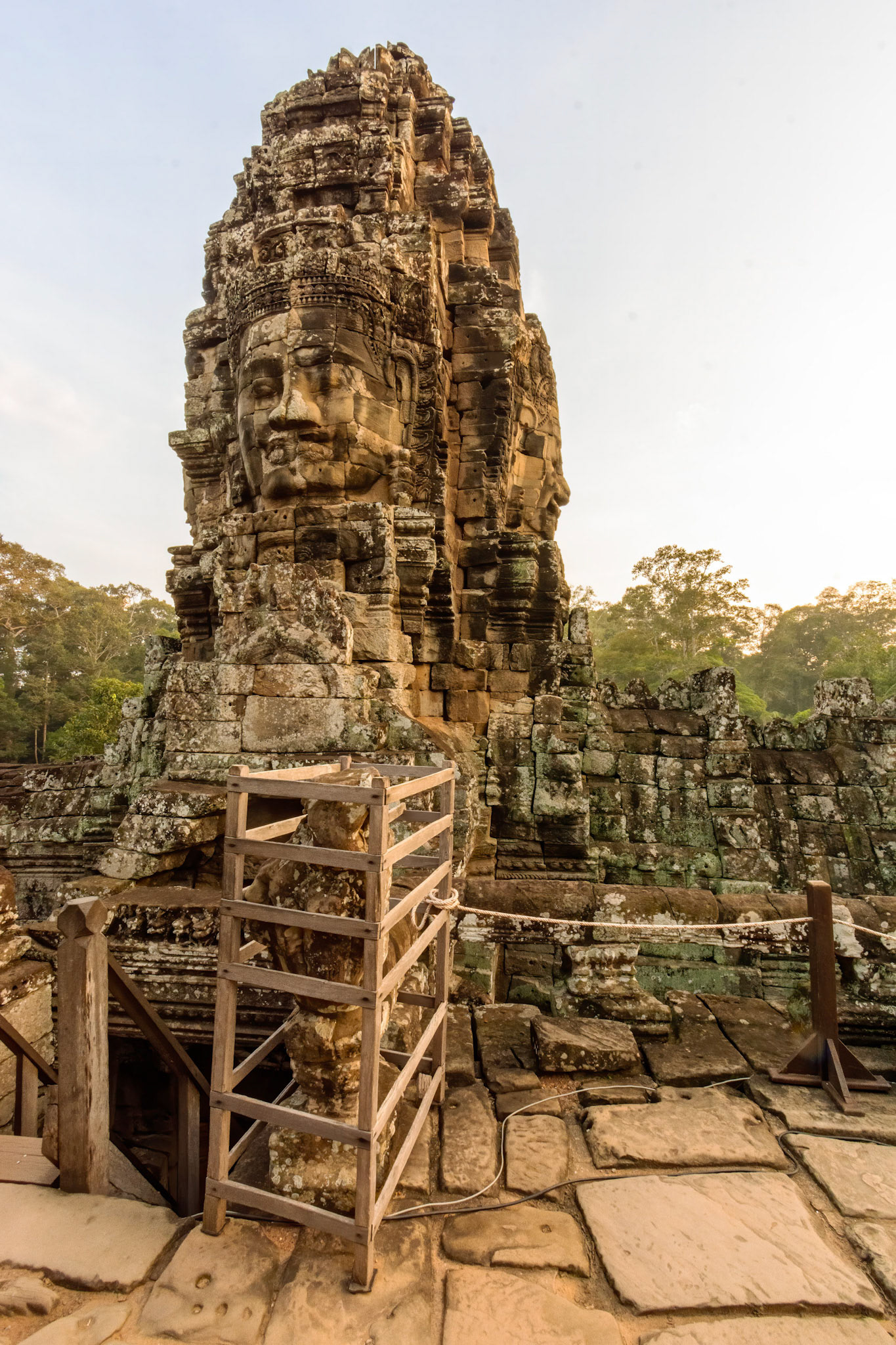 Bayon Temple - ប្រាសាទបាយ័ន was the first temple I visited on my first trip to Cambodia in 2013, when it was undergoing major restoration work which meant that many sections were inaccessible and heavy equipment obscured parts of the view. It’s one of several temples within Angkor Thom - អង្គរធំ, and is 1.7 KM in a straight line north from the West Gate of Angkor Wat. Angkor Thom dates from the late twelfth century and the last temple (Mangalartha) constructed within the city was dedicated in 1295. It’s estimated that Bayon was constructed sometime during the late twelfth and early thirteenth centuries and was the “last state temple built at Angkor, and the only Angkorian state temple to be built primarily as a Mahayana Buddhist shrine dedicated to the Buddha”.