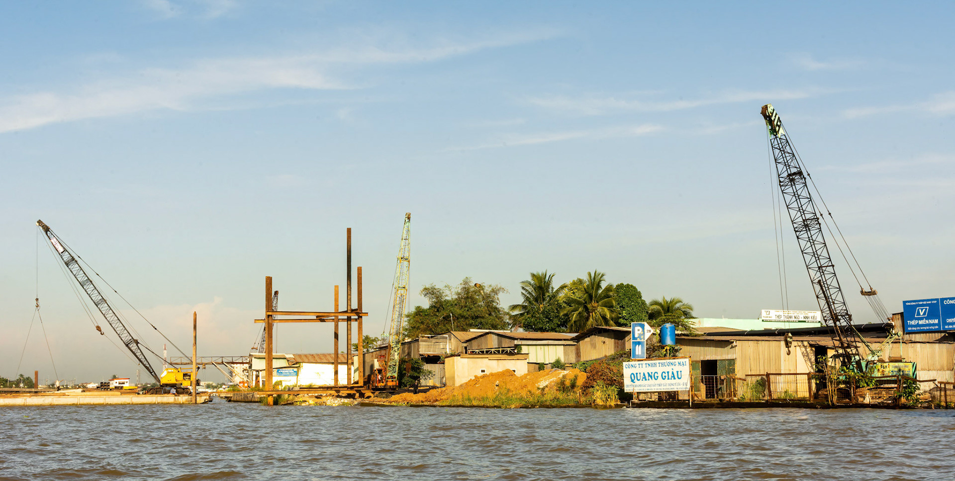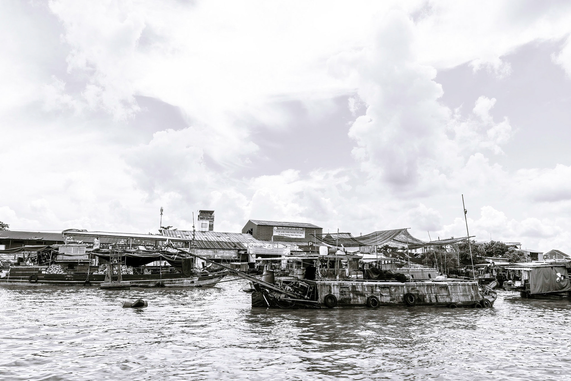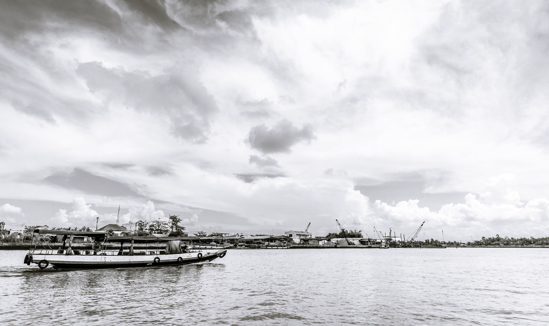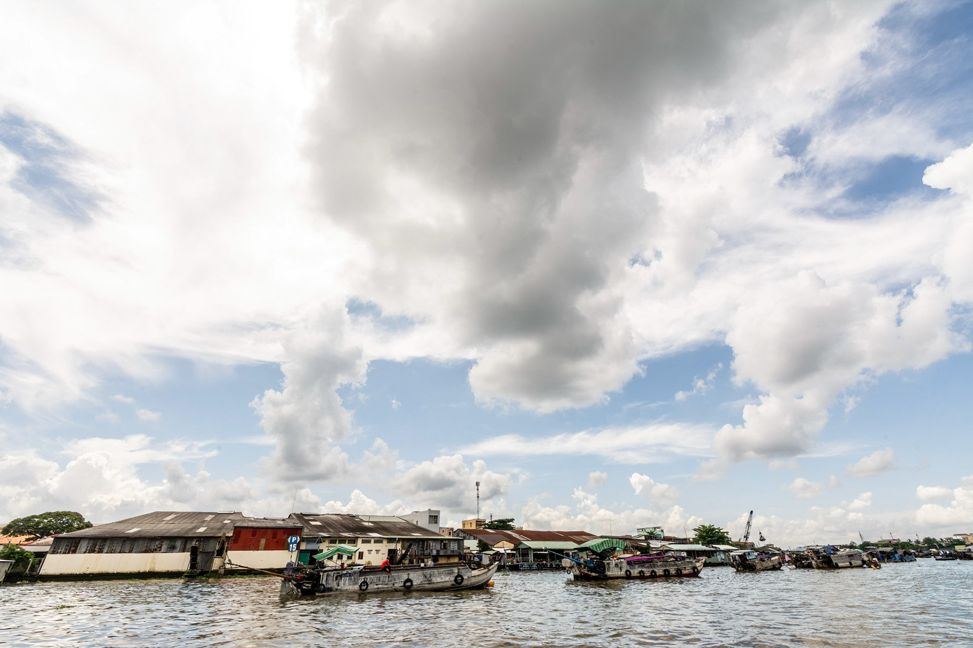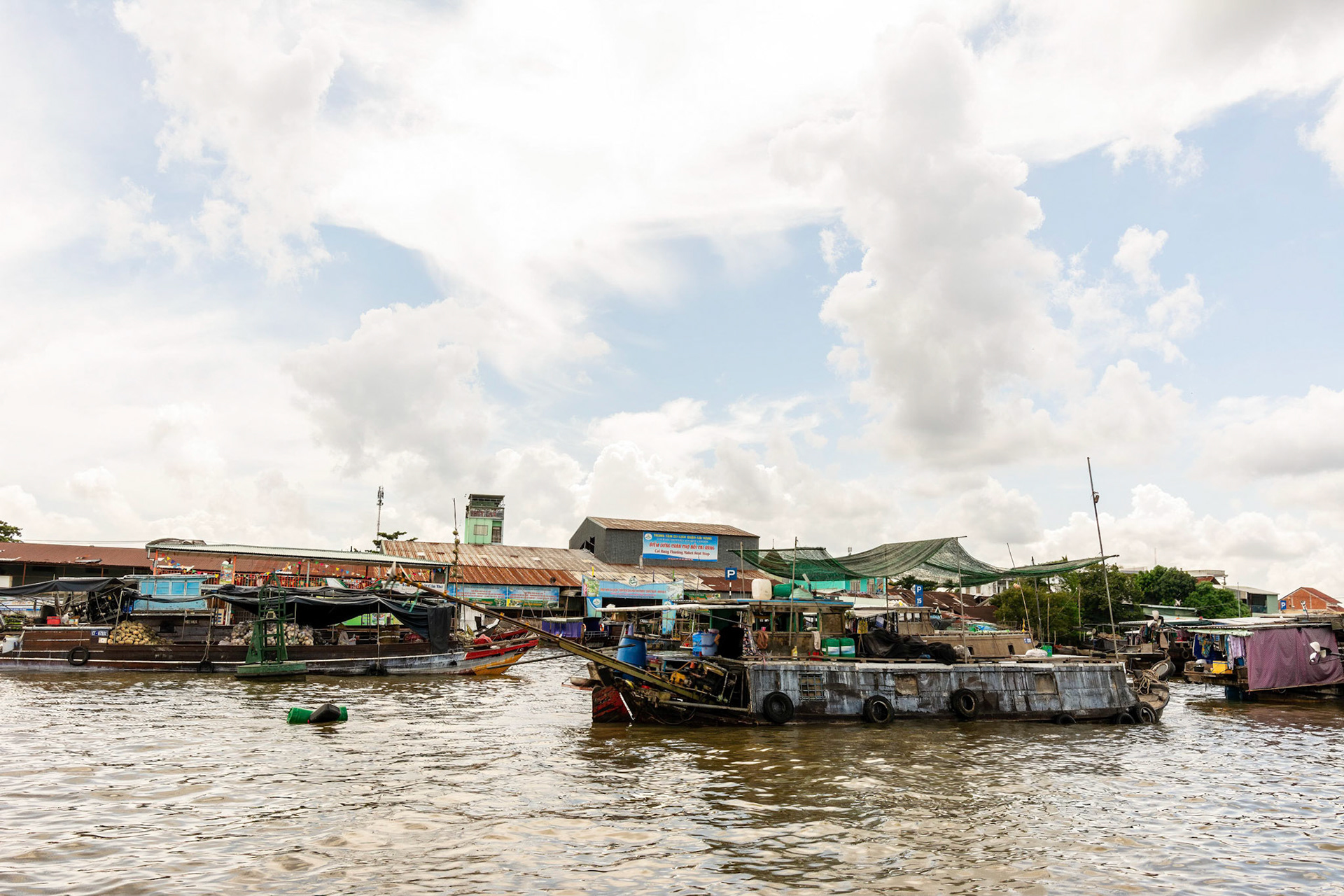 Morning was spent going around the Bến Tàu Cần Thơ (Cần Thơ) Chợ Nổi Cái Răng (Cai Rang Floating Market) and then on to a rice paper noodle factory. The large boats tend to be wholesalers with the boat acting as a combined business premises and home; above each boat is a long bamboo pole which has a sample of what the boat is selling. In between are smaller boats dashing about, some transporting produce to and from the bigger boats and others selling drinks, coffee and noodles and others acting as water taxis.