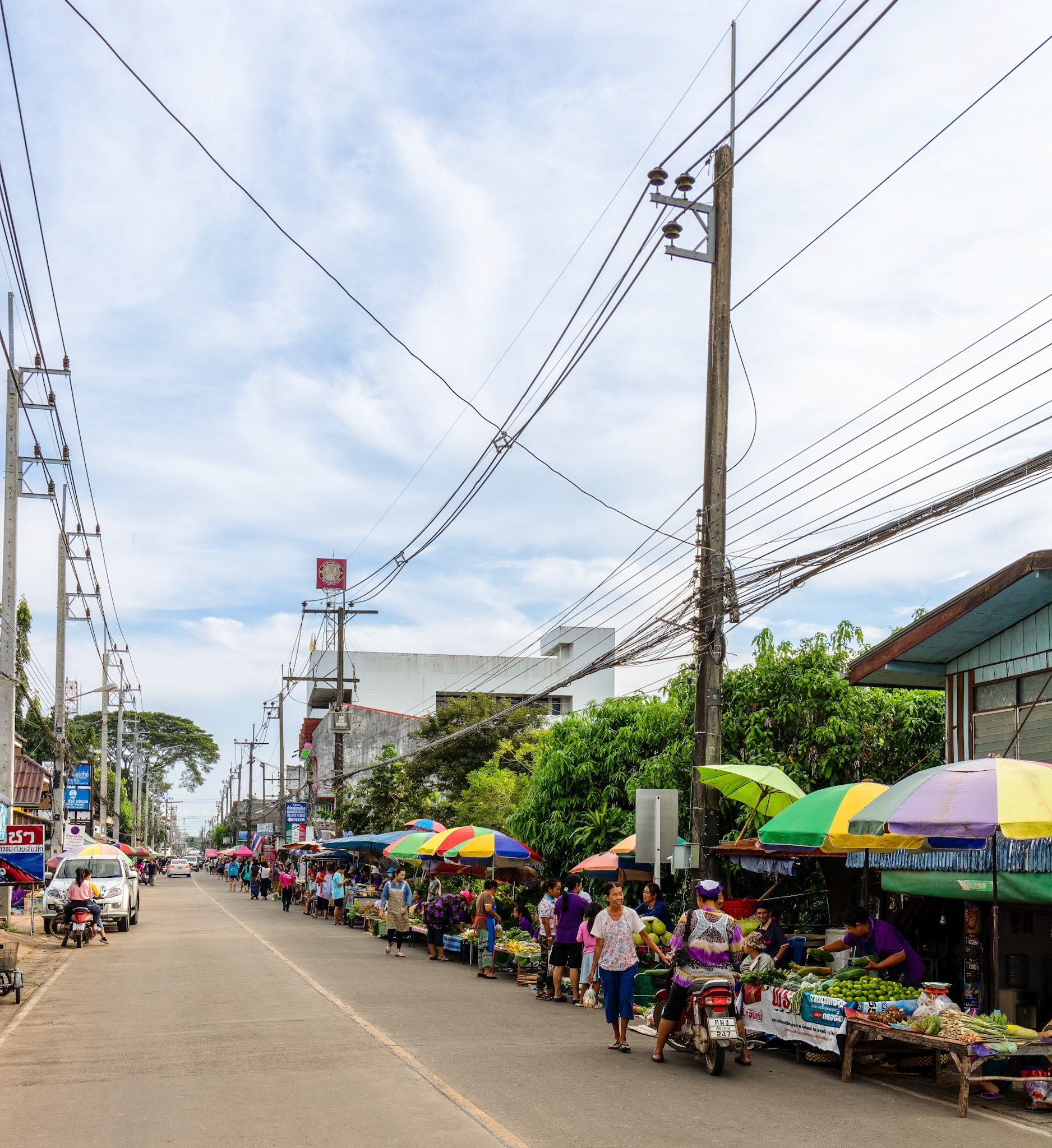 Stop 3 Round the corner and up the road from the temple people were setting up the street market ready for the night's trading.