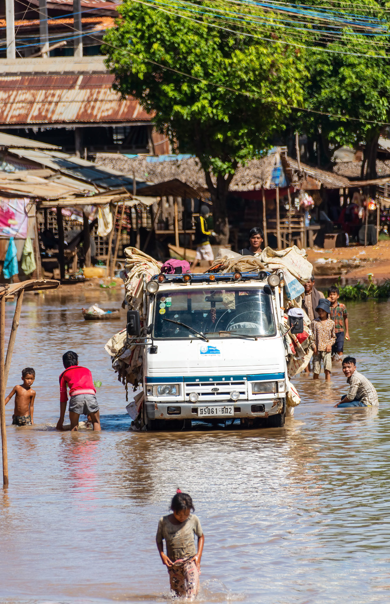 Now the town is pretty close to the geographical centre of Cambodia and is a major transportation hub for both road and water transport. Most of the people living in the floating village are ethnic Vietnamese, while they have very limited civil rights- not allowed to vote, own land and many occupations are closed to them- the Cambodian state does provide education, with some of the schools also part of the floating village. The pontoons for the house boats are mainly bamboo, which in a lot of cases has to be replaced every year.