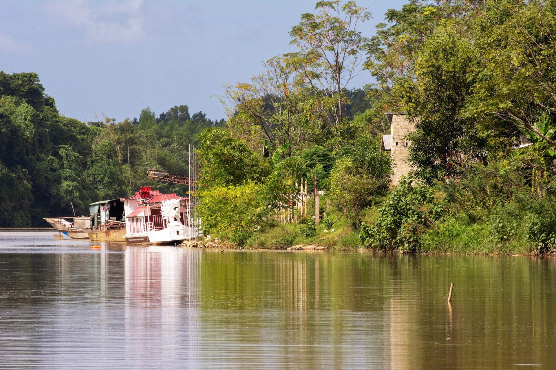 Stop 2 Lăng Minh Mạng (Minh Mạng Tomb) Lăng Minh Mạng is a scenic 16 km or so up river from the Thiên Mụ Pagoda. Minh Mạng (r 1820-1841) was the second of the Nguyễn Dynasty rulers of Central and Southern Vietnam. The mausoleum was constructed by his son and successor, Nguyễn Phúc Miên Tông (r 1841-1847), between 1841 and 1843. After walking around for a bit it was back down the river to Kinh thành Huế, on the way we came across a kayaker and after throwing him a line gave him a tow for a while.See Wikipedia, Oriental Architecture and Vietnam.com.