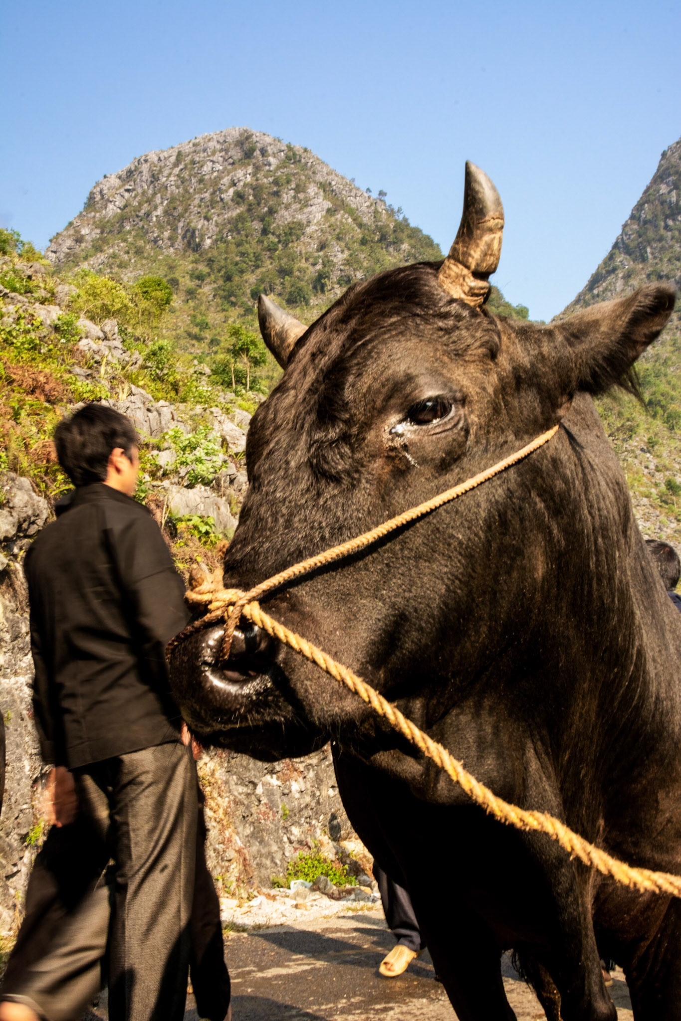 Once through the thickest part of the melee there were sections where people sold dogs, squealing pigs and cattle. We spent several hours in the market before going through the famous and adjacent house of the former H'mong King and opium lord.
