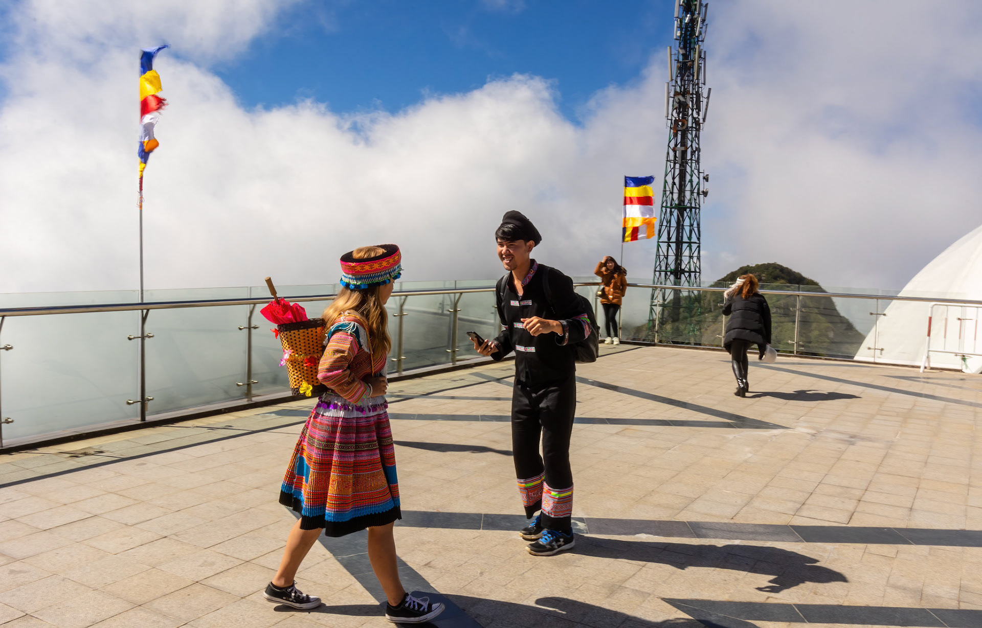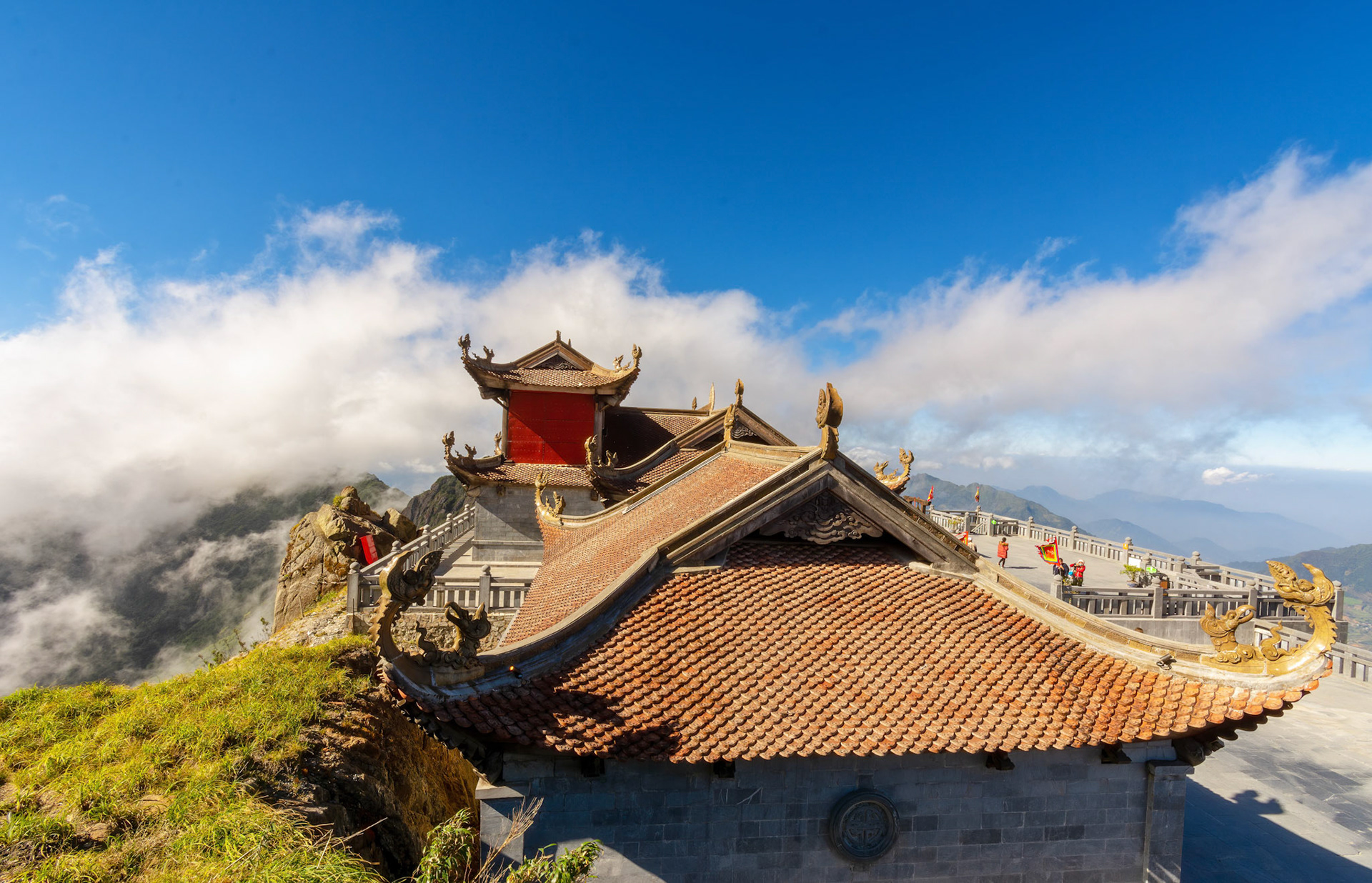 Stop 2 Mount Fansipan. once accessible only after a three day hike up the 3,143 metre high Phan Xi Păngwhich is the highest mountain in South East Asia, and rarely climbed- at least officially, because I'm sure some of the local hill tribe people made the trek as part of a pilgrimage to the holy mountain. All that has now changed with the opening of the relentlessly commercial combination Sun World Fansipan Legend Funicular – Cable Car – Funicular. Just near the town square is the start of Sun World; purchase tickets and go on the funicular to get to the cable station (about 20 minutes), go up several escalators and hop onto the record breaking cable car.