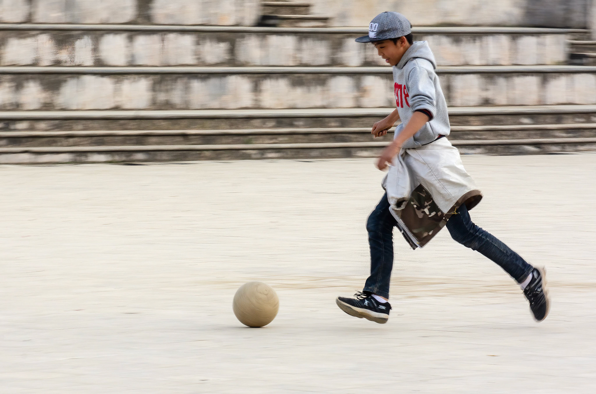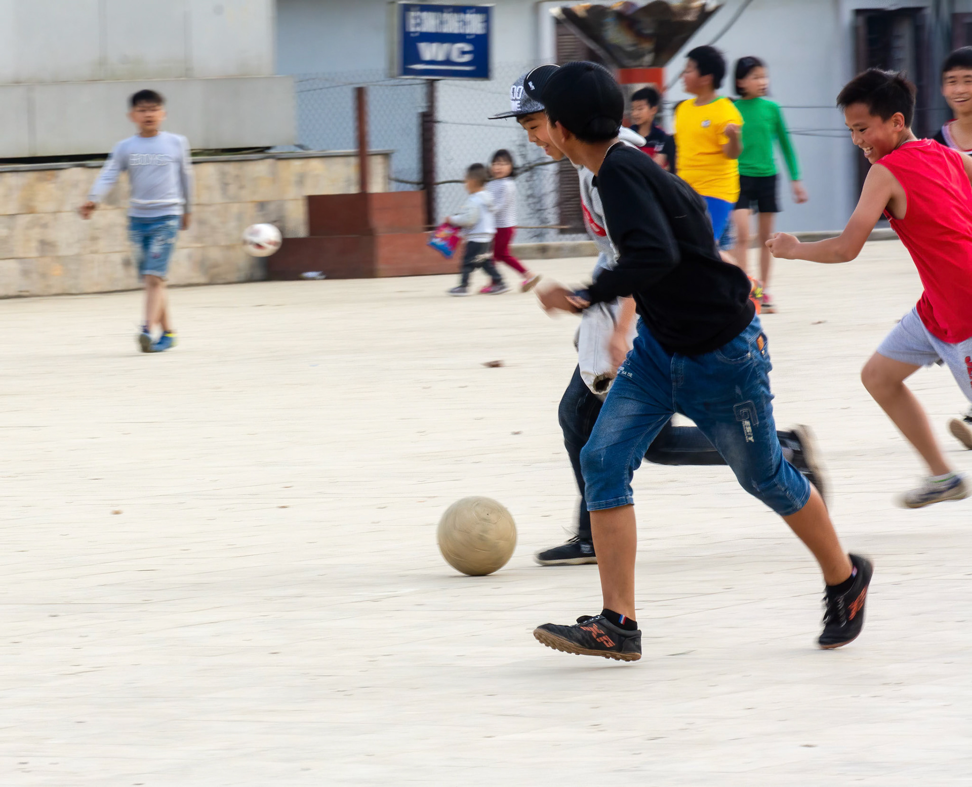 Stop 3 Nhà Thờ Đá (Notre Dame Cathedral) and Thuê Xe Máy (Town Square). Opposite Sun World is Thuê Xe Máy (Town Square) and Nhà Thờ Đá (Notre Dame Cathedral). Hill tribe people were socialising in front of the cathedral while some of the town boys were playing soccer in the square, also known as the Love Market. The concrete surface must be a good training ground for them to learn to stay upright while playing because I didn't see a single boy fall and scrape themselves, even though they were playing vigorously; rugby, however, would be totally out of contention.