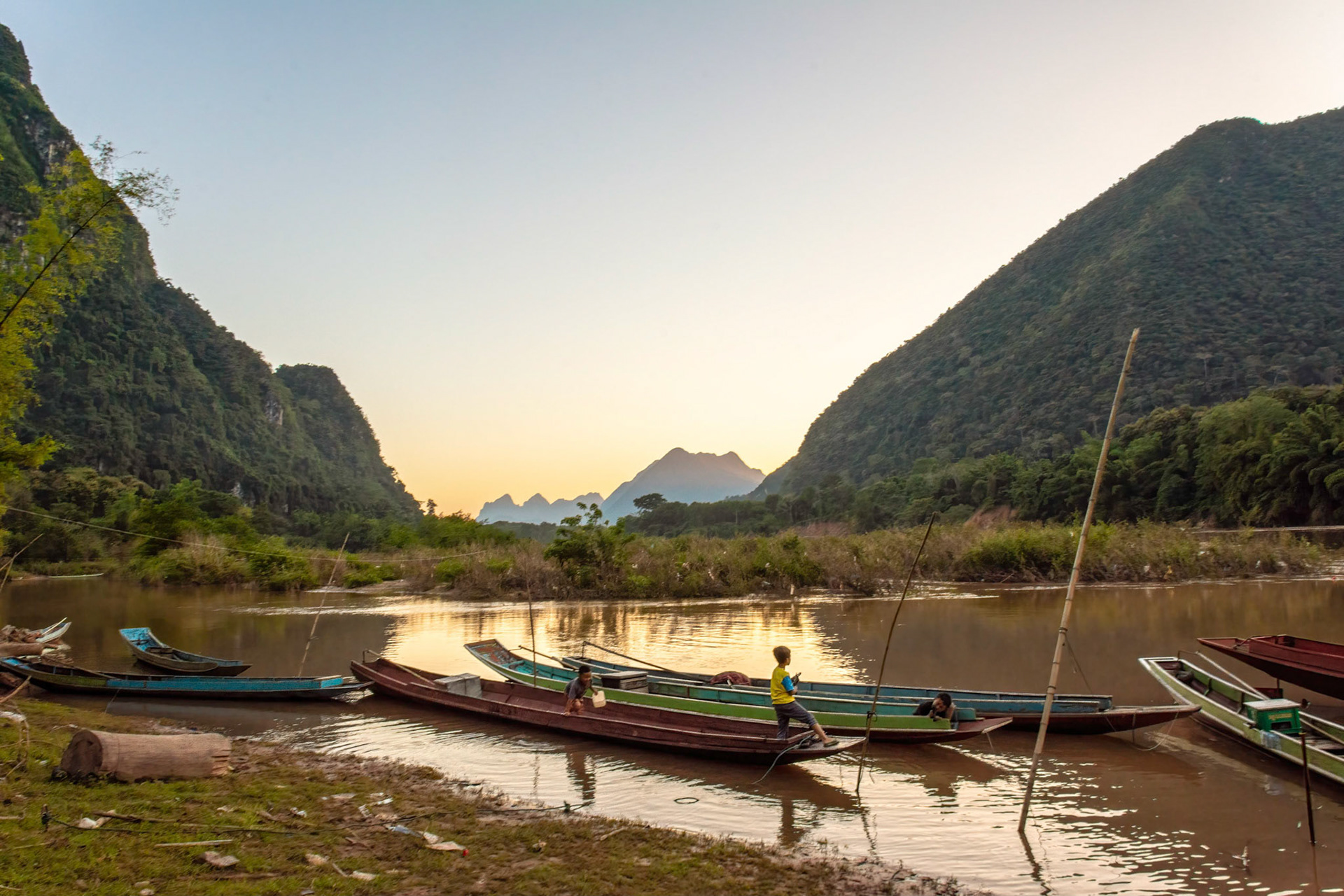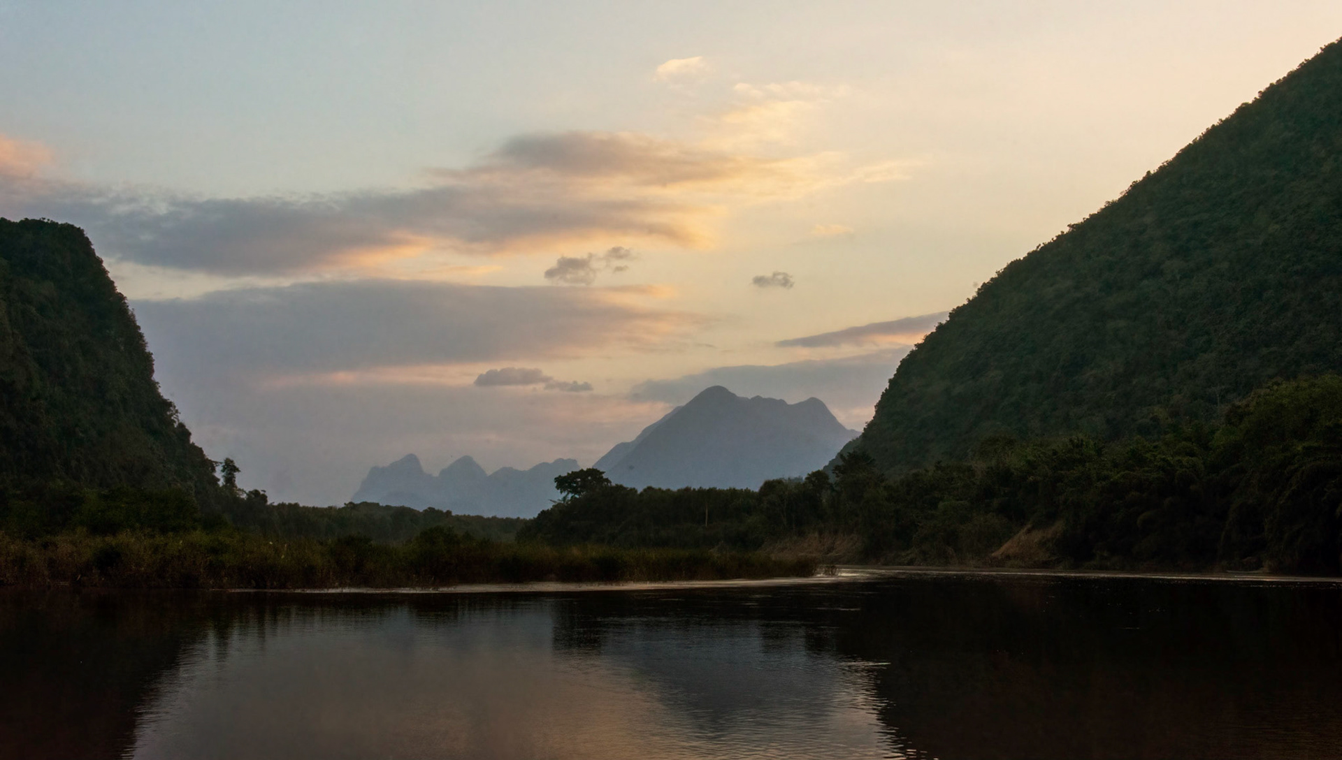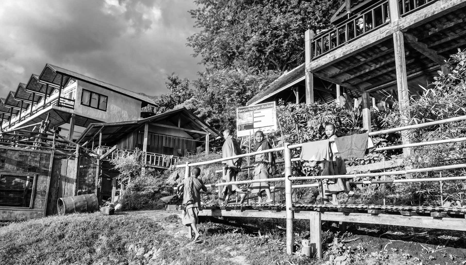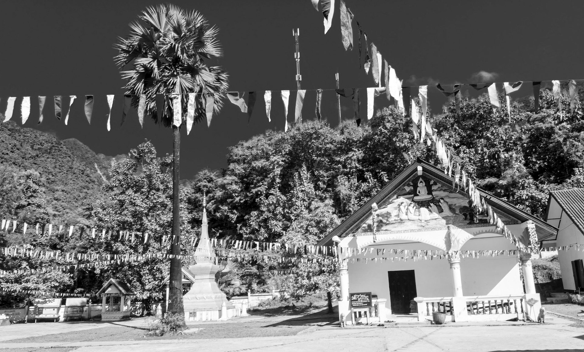 Next morning I went down to Vat Okad and then Ot, the guest house owner, took me along the only road into town to the valley as far as Tham Kang Cave, where locals sheltered during bombing raids by the USAF during the war. Later in the afternoon I revisited to the temple, and along the road before returning to the river for the sunset.