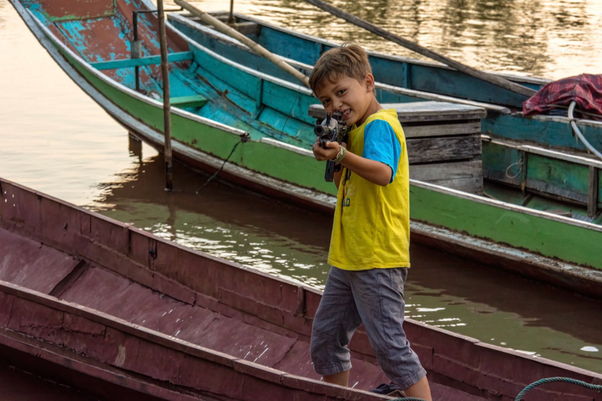 I’d arrived and settled with enough time to enjoy the late afternoon “golden light” and sunset. After walking along the main street I went to the river, as I was there some local children came crashing though with their toy guns horsing around at war and very happy to play to the camera.