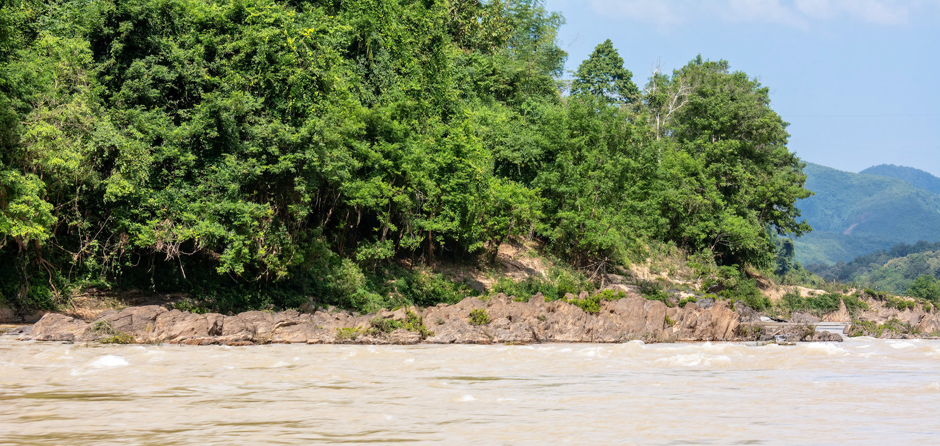 My guest house organised my next stage: 70 km by river, and an increase of elevation of 86 metres, from Muang Ngoi to Muang Khua, songthaew (larger than a tuk tuk and built on a utility rather than motor bike) and boat again- this time in more comfort than the public boat from Nong Khiaw. A dam under construction blocked the way between Muang Ngoit and Muang Khua, hence the need to get two boats instead of one boat straight up, the songthaew was to get me from one boat to the other and around the dam- about 3 km.