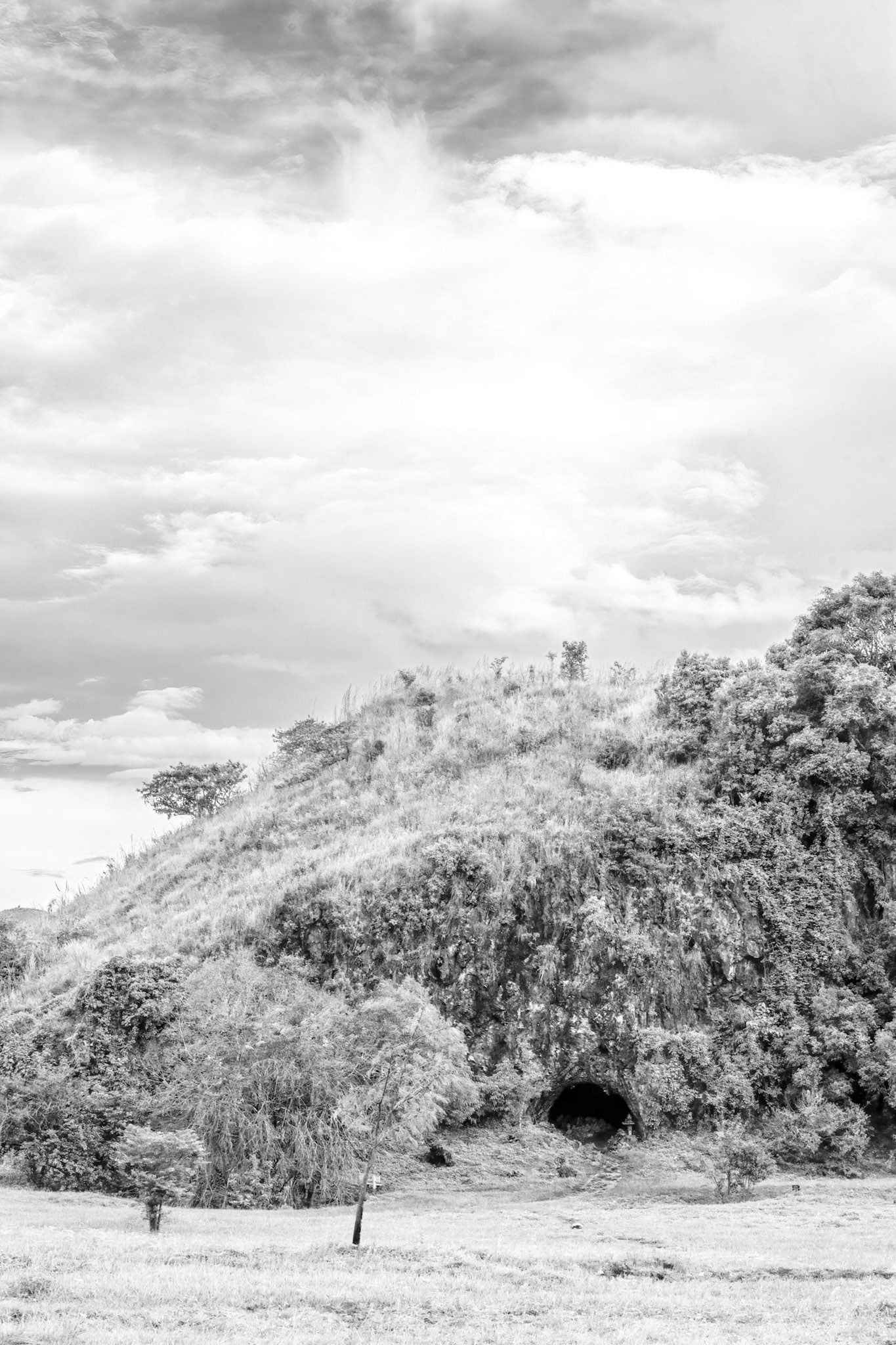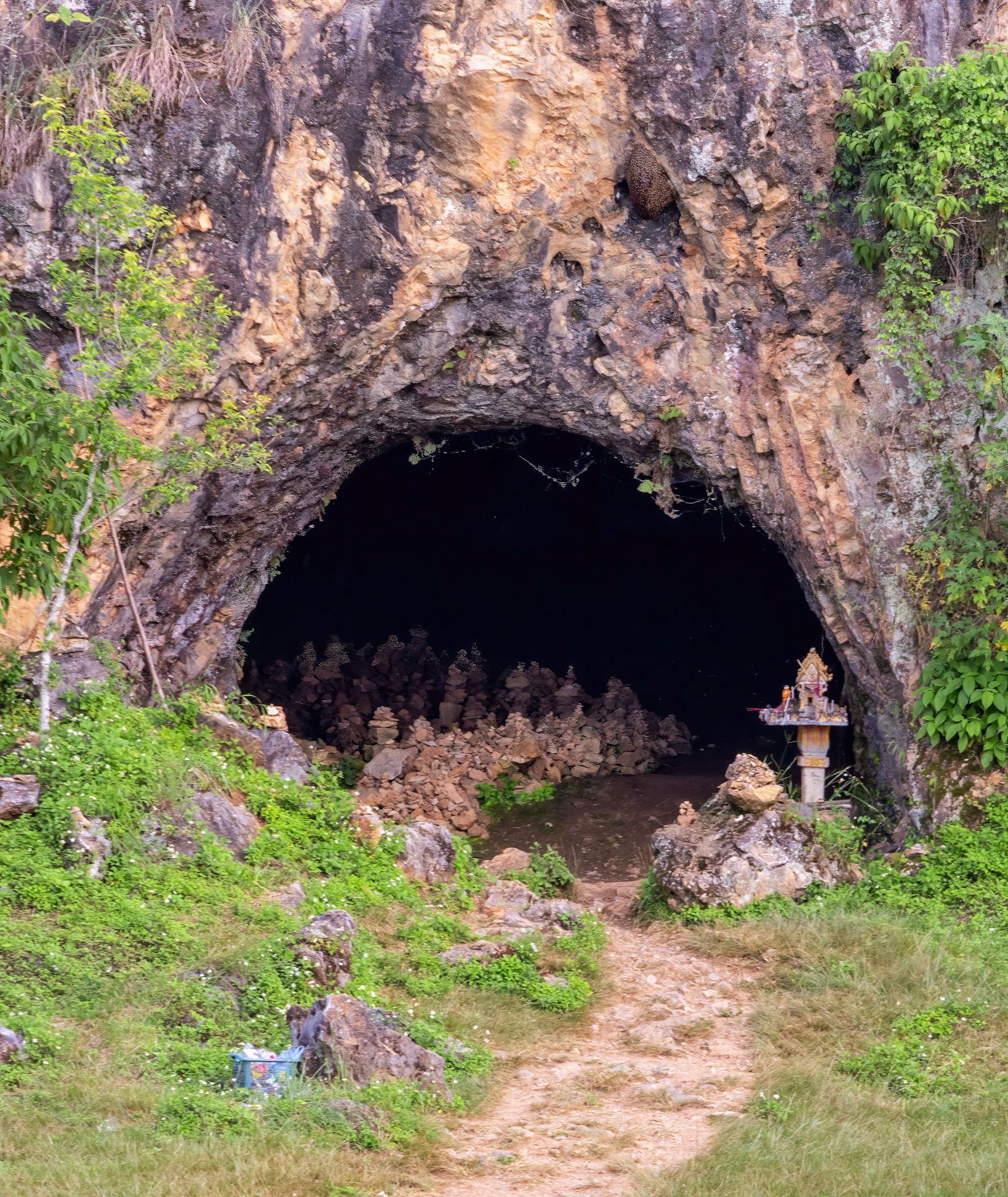 Site 1 roughly circles around a limestone kharst containing an enlarged natural cave with holes cut into its ceiling; it’s thought the cave had been used as a crematorium and the holes were for smoke vents. Now the cave contains a large number of statues and it seems to be a Buddhist shrine. Only one of the jars out of the over two thousand in the entire district has any form of of decoration: an etched bas-relief of a figure that resembles a human frogman. I was unable to get a good image of the figure, mainly because it’s extremely faint in the first place and the light wasn’t striking at a good angle.
