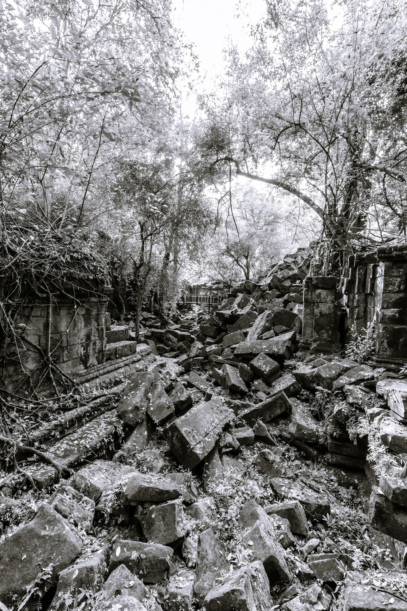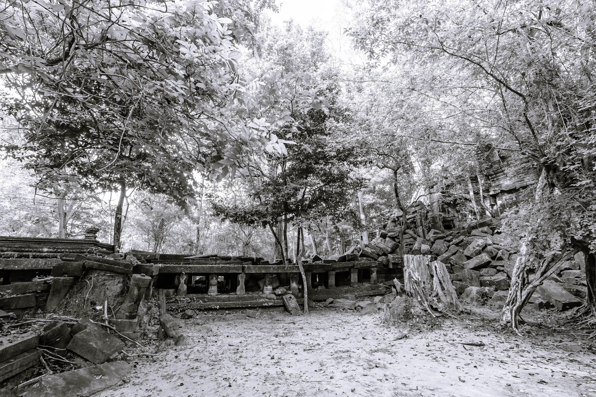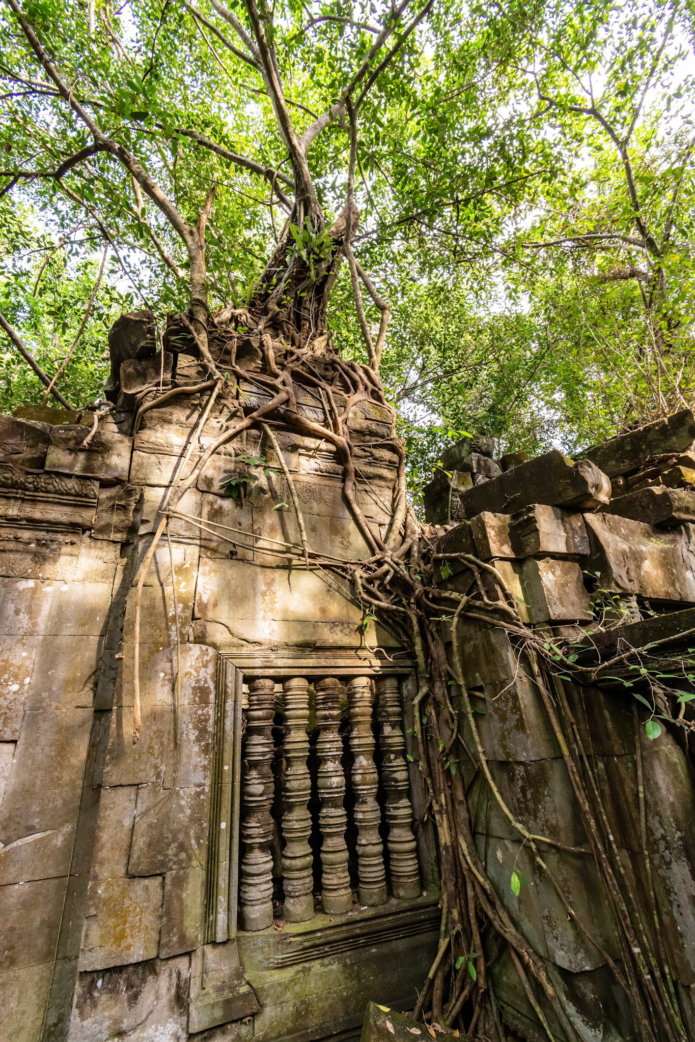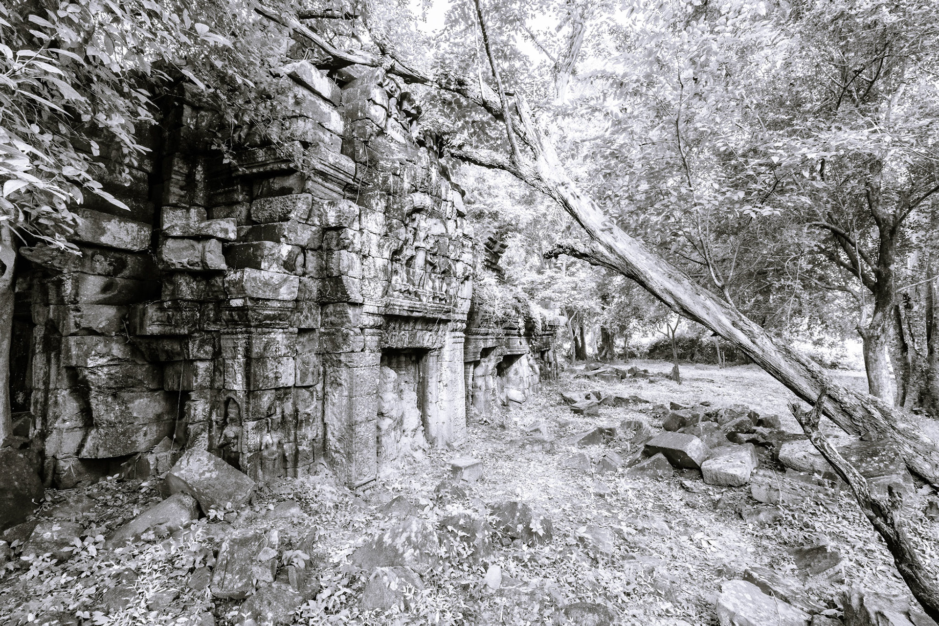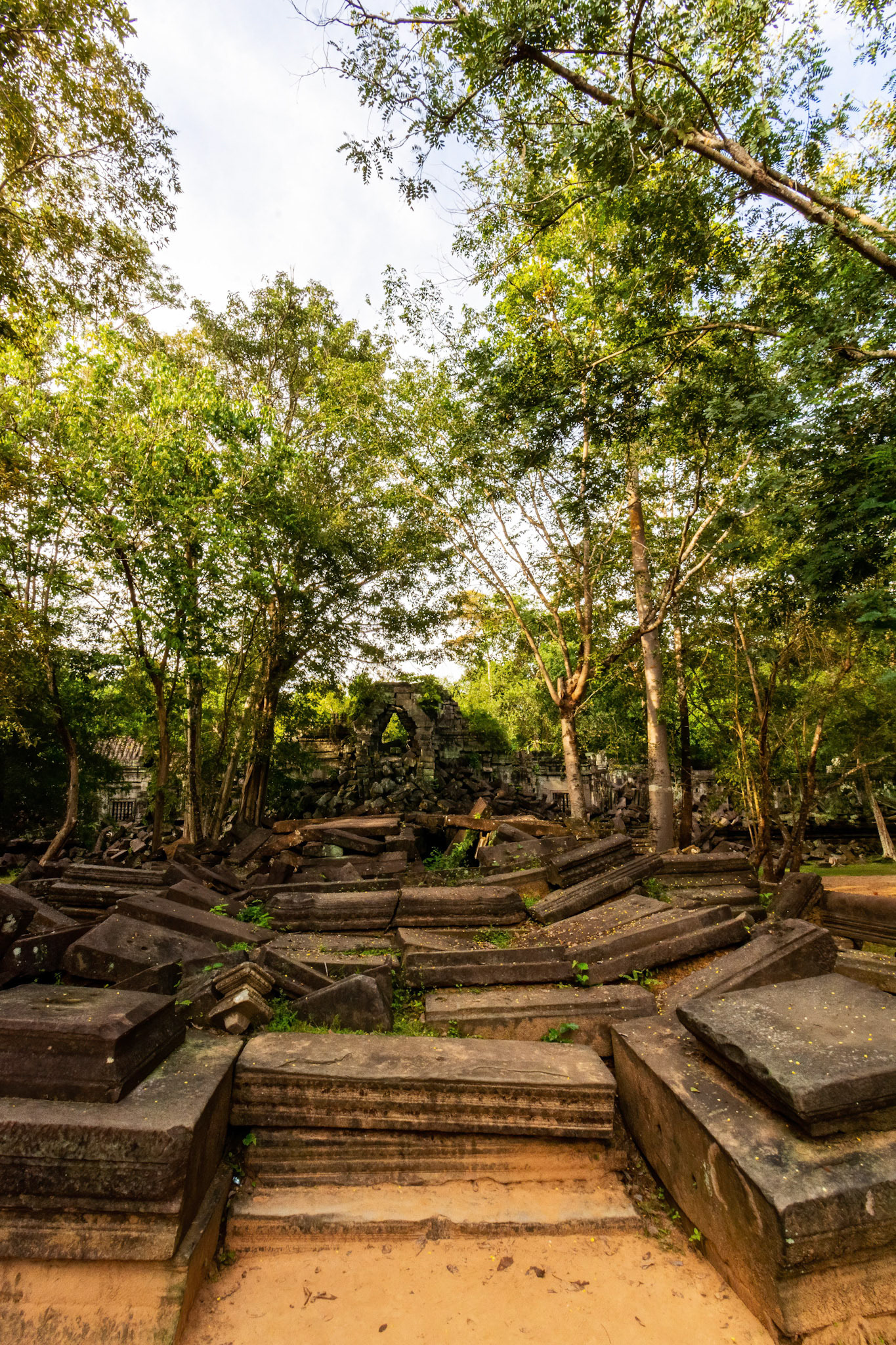 Over the years the forest encroached and only a small portion has been cleared away meaning that most of the complex is heavily shaded as you walk around. It’s only been accessible since “the early 2000's due to buried land mines, a legacy of the Khmer Rouge era and its aftermath” which means that it’s been saved from any restoration work except some basic stabilisation and a winding wooden walkway; stone blocks remain scattered where they originally fell. both inside and outside the main temple.