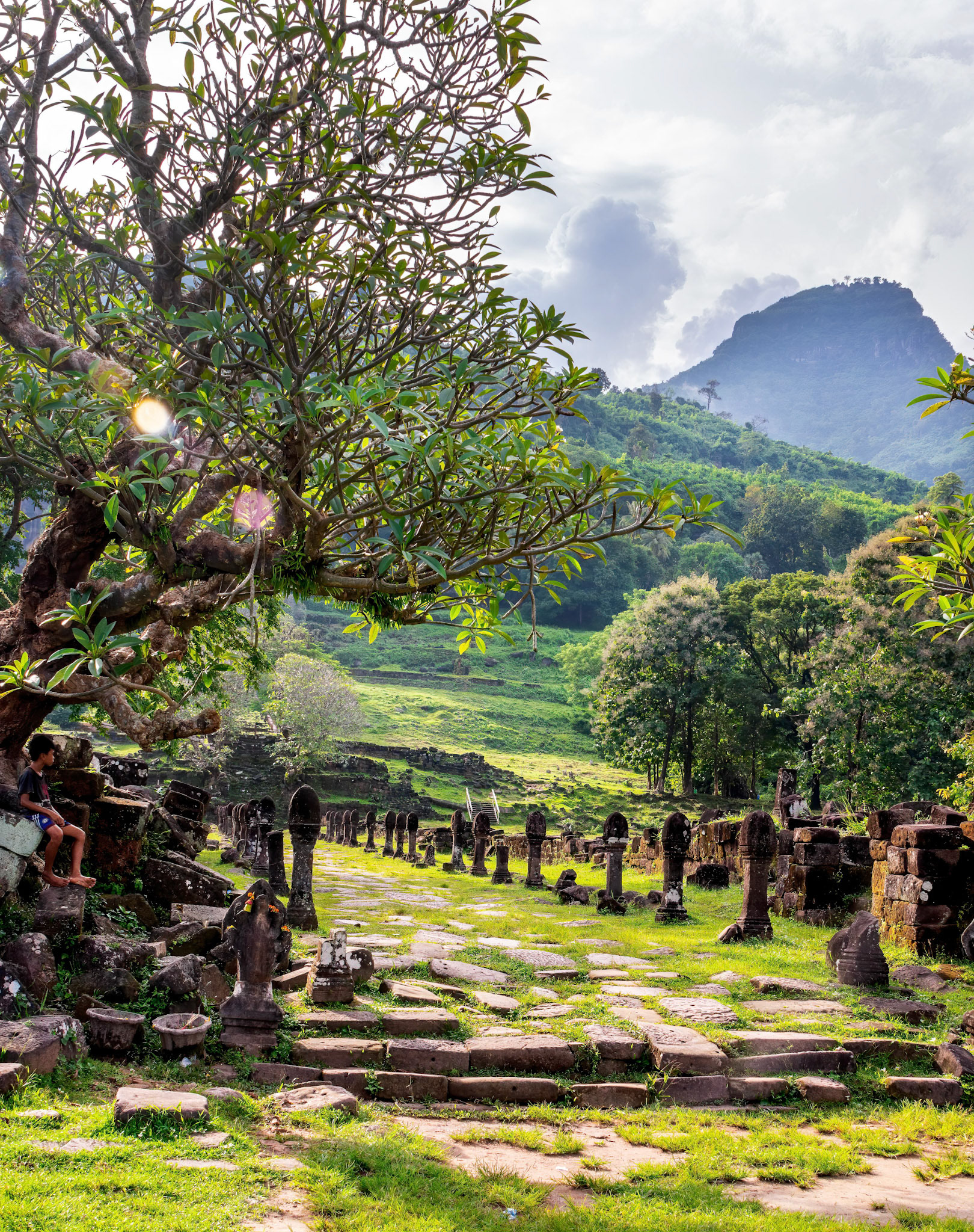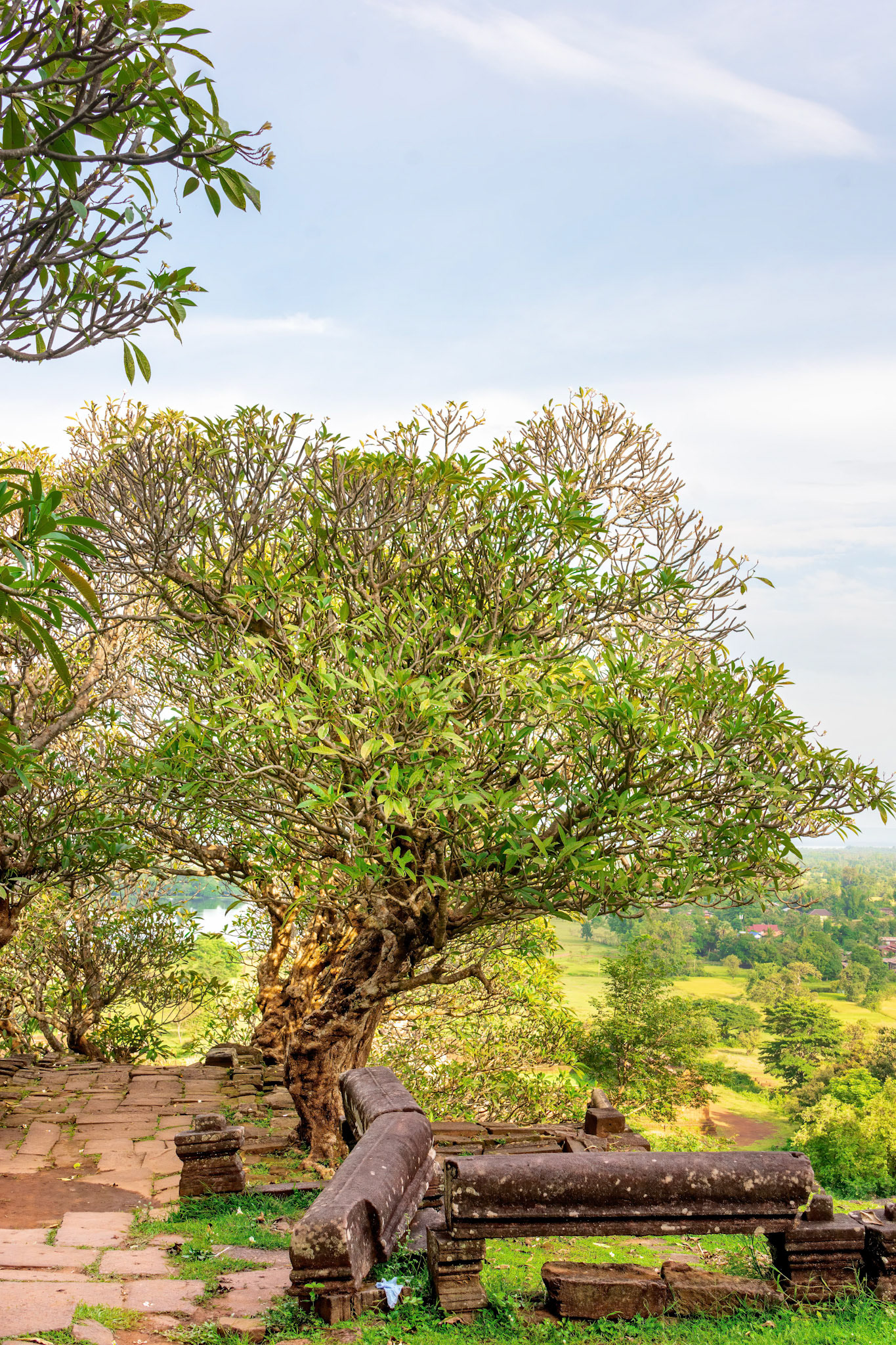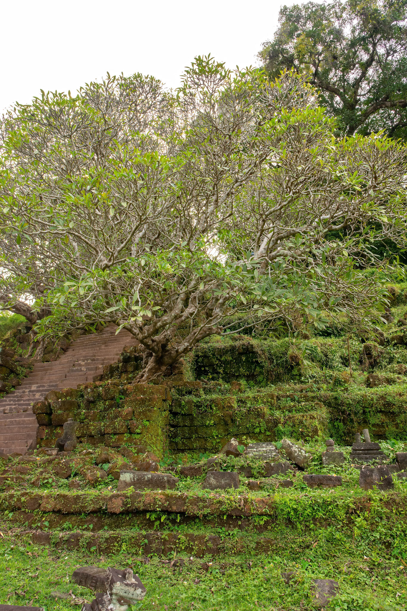 The "Vat Phou Temple complex, is a remarkably well-preserved planned landscape more than 1,000 years old. It was shaped to express the Hindu vision of the relationship between nature and humanity, using an axis from mountain top to river bank to lay out a geometric pattern of temples, shrines and waterworks extending over some 10 km. Two planned cities on the banks of the Mekong River are also part of the site, as well as Phou Kao mountain. The whole represents a development ranging from the 5th to 15th centuries, mainly associated with the Khmer Empire." I have to confess I didn't make it up to the top of the temple! See UNESCO.