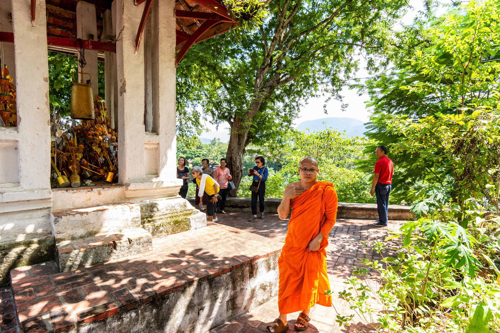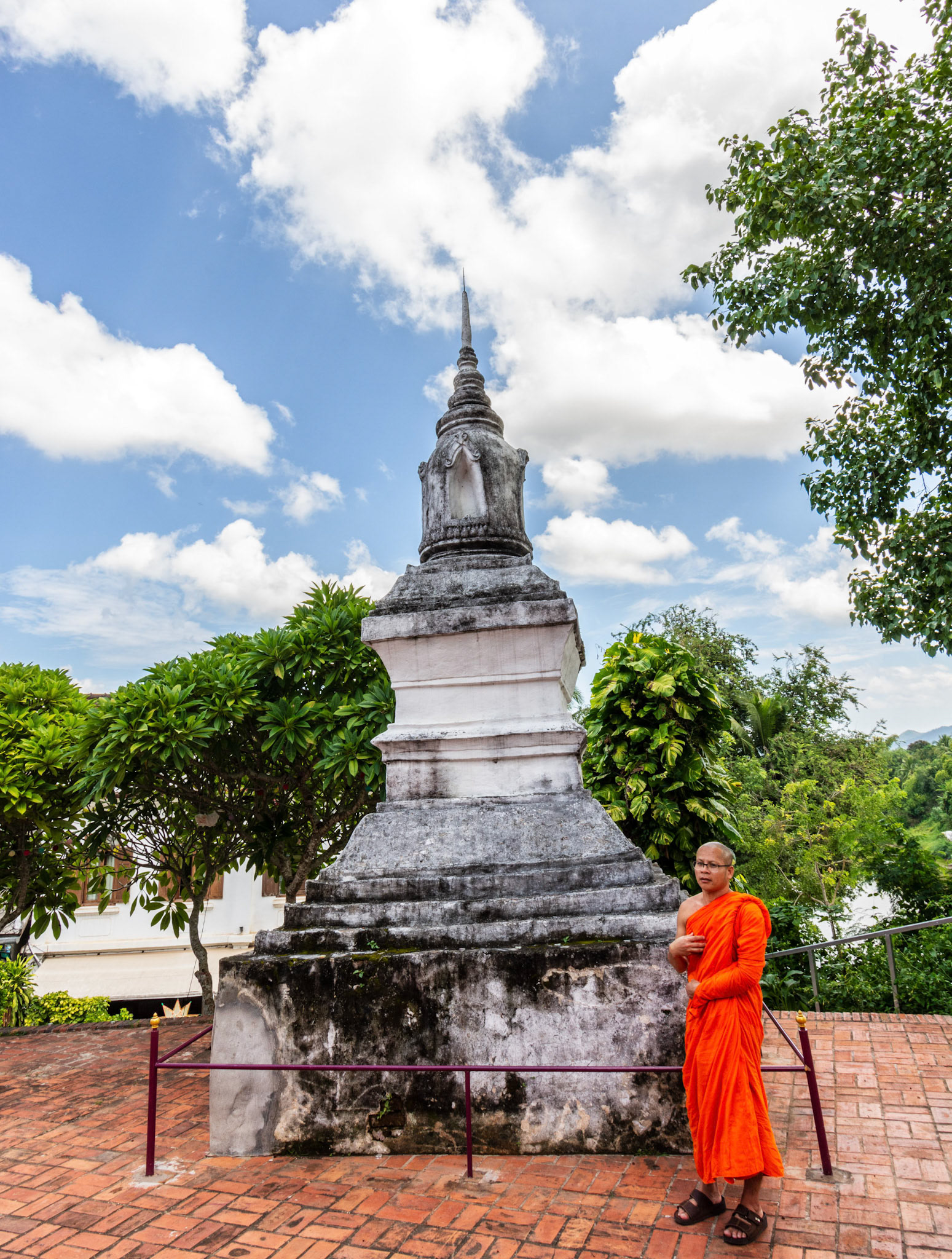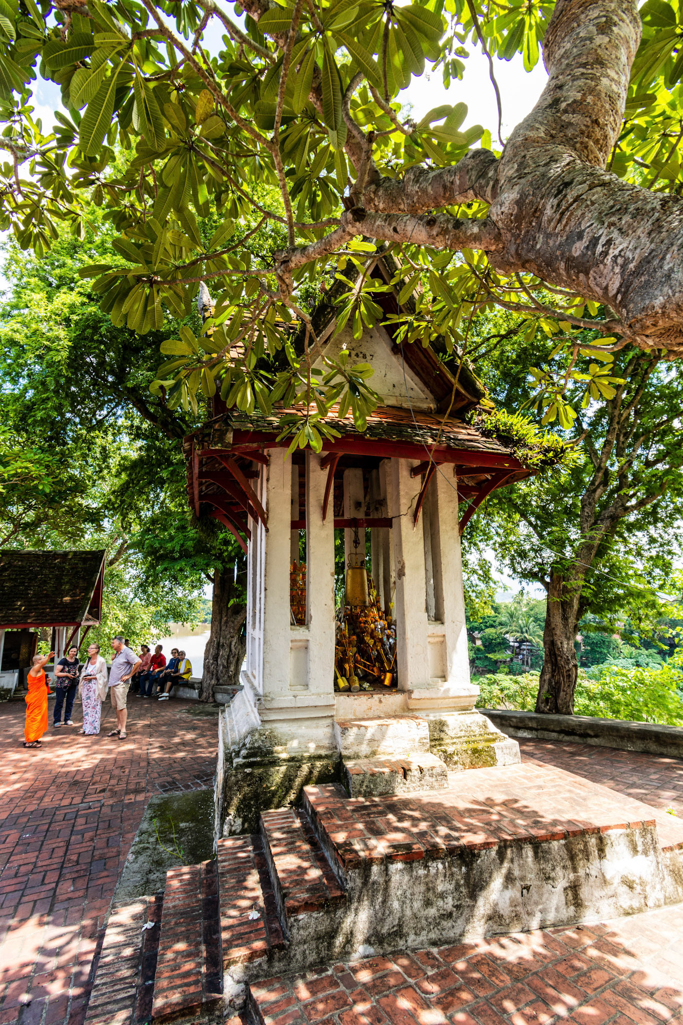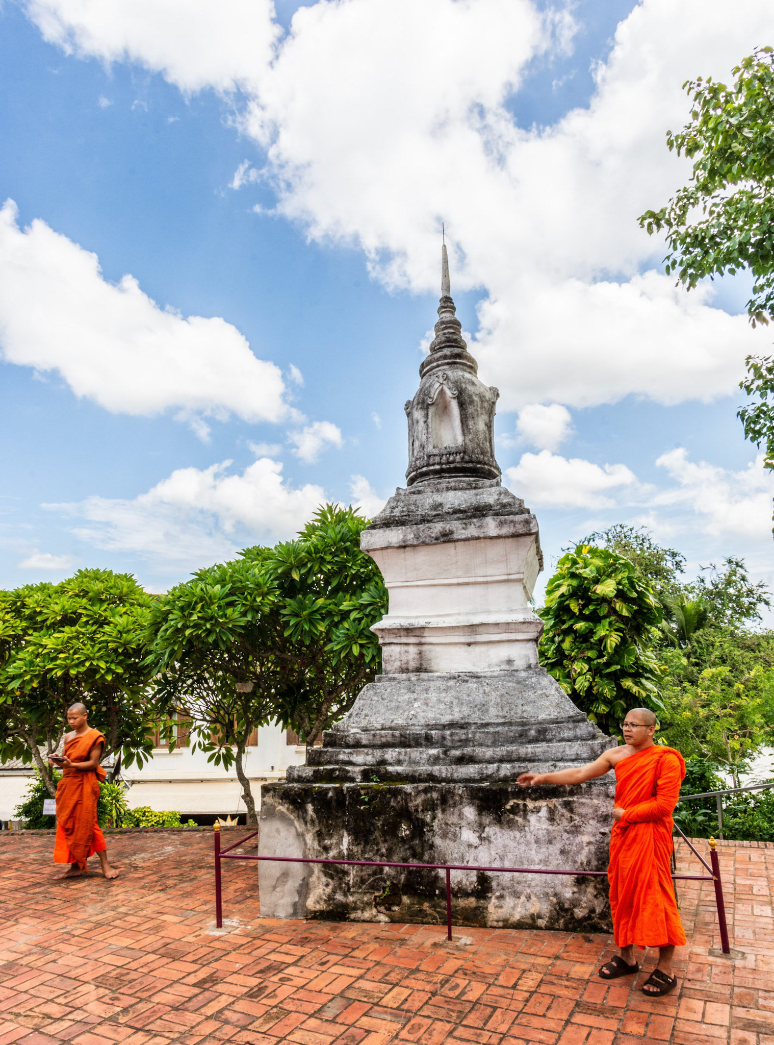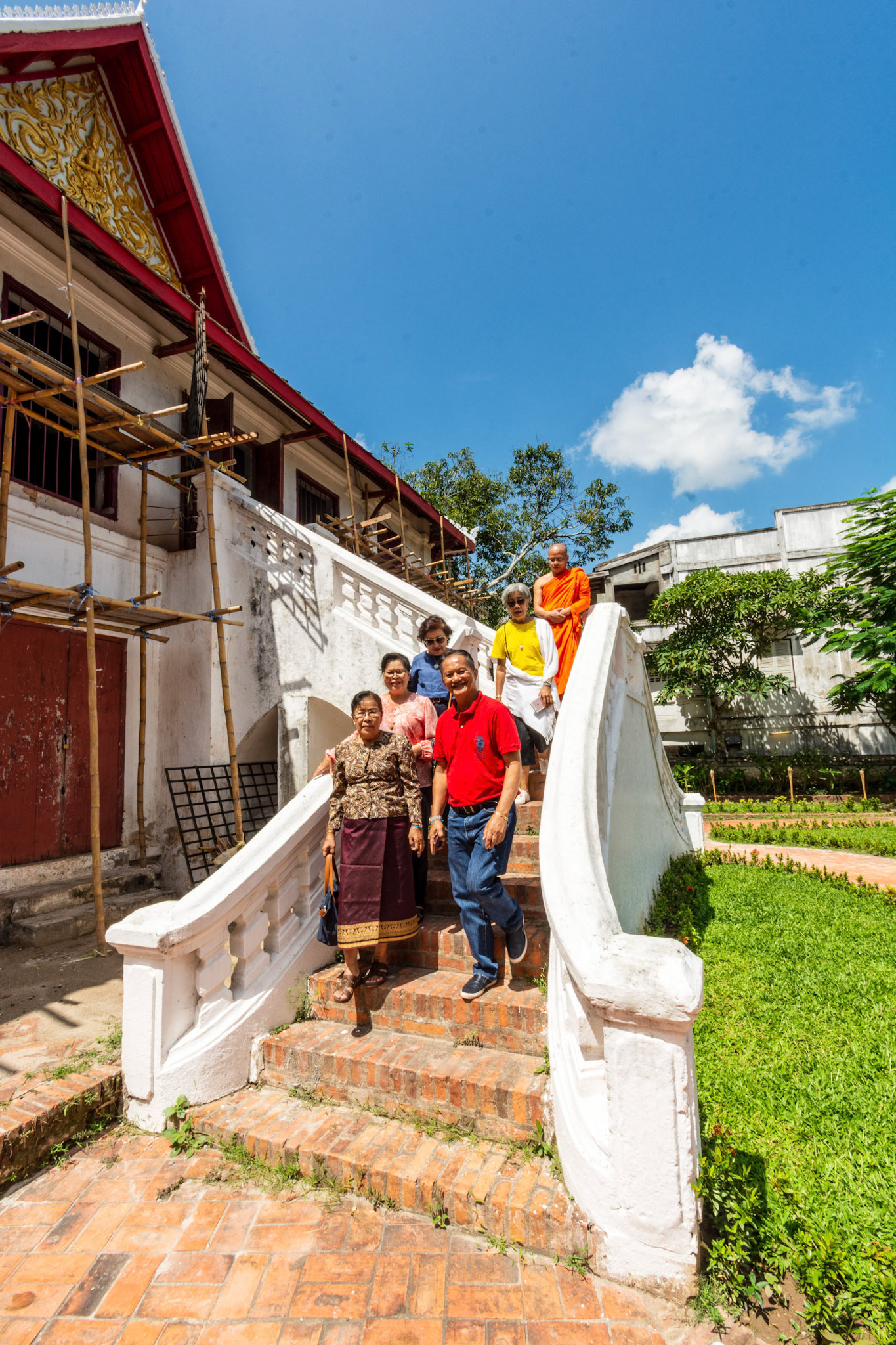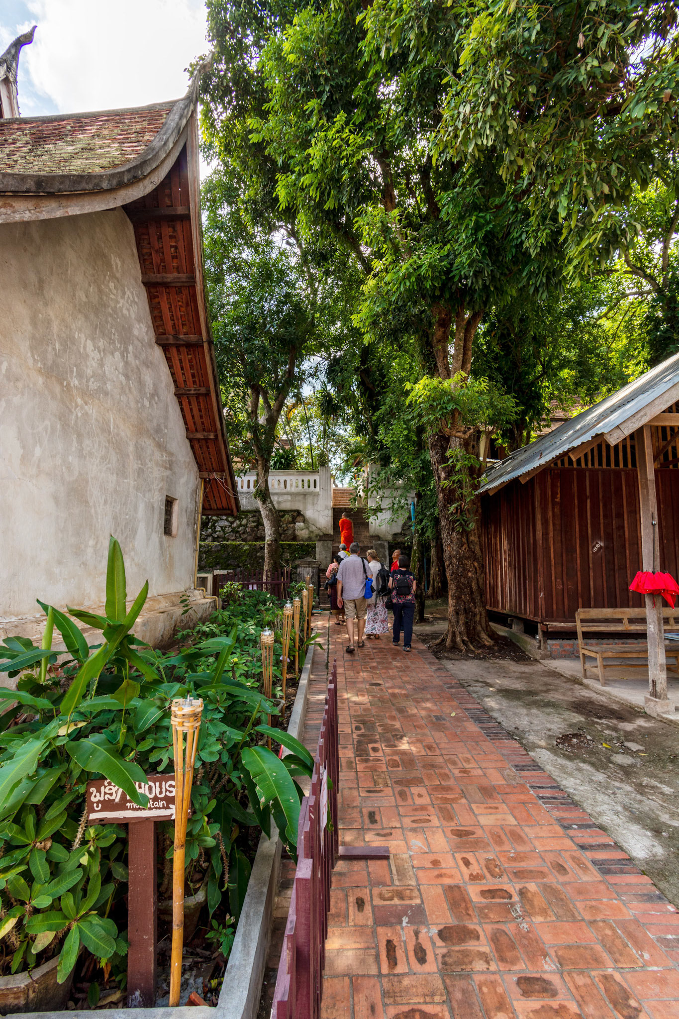 Boun Heua Fai (Fireboat Festival) day with the parade, weather permitting, due to take place that night. I went into Wat Siphoutthabath to see if anything was happening and was almost immediately greeted by a monk and invited into a prayer service- he’d seen my camera and wanted me to take shots during the service. Apart from the novices, there was what seemed like a prominent family group who during the service gave numerous offerings to the temple. Afterwards the monk walked the family group, a couple of other tourists and me in tow around the grounds.